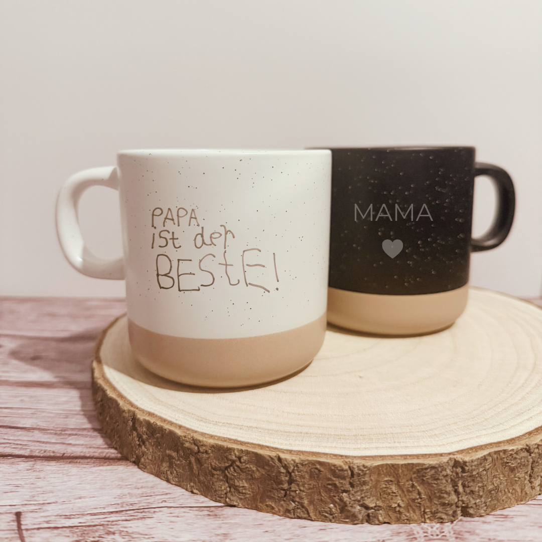 Wir gravieren deine echte Handschrift detailgetreu auf die Tasse.