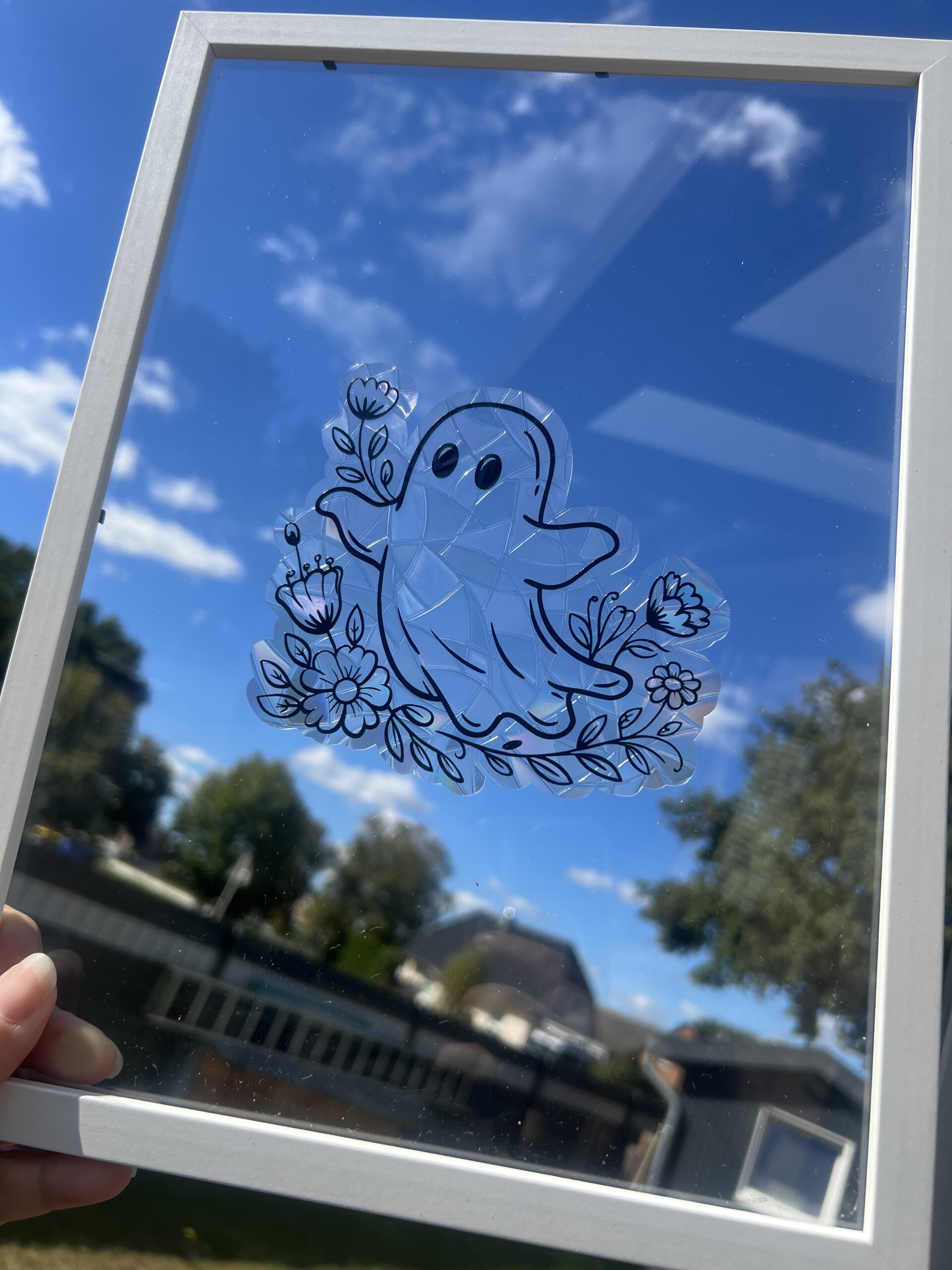 Suncatcher aus Prismenfolie, verziert mit Vinylfolie.